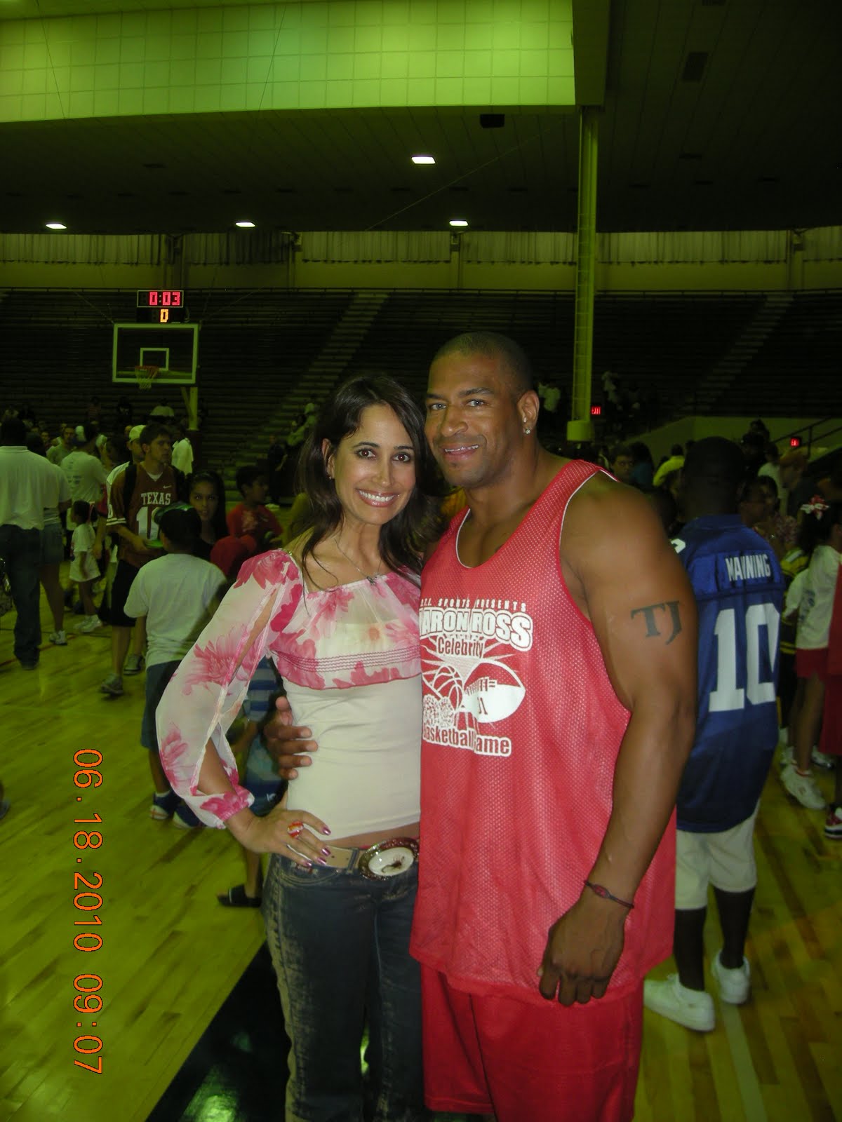 Model/Emcee Double Duty during Aaron Ross' football camp weekend, June 2010
